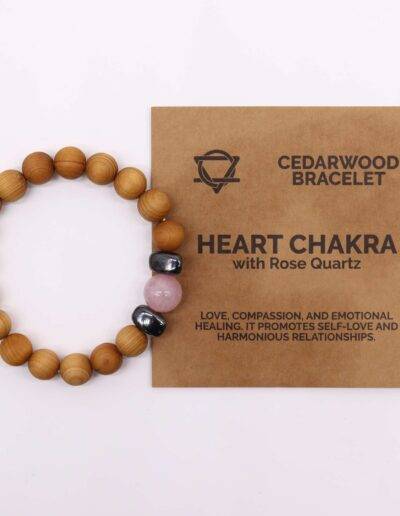 Embrace the natural beauty and heart-healing properties of our Cedarwood Heart Chakra with Rose Quartz. Let it guide you on a path of love, compassion, and inner peace, enhancing your connection to yourself and those around you.