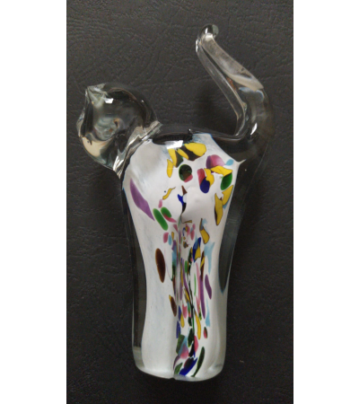 A well-crafted white glass cat with floral designs made from blown molten glass. It is a beautiful ornament with intricately designed and unique patterns that make each cat a one of a kind. This glass cat  is made with limitless imagination and knowledge of glass has made it possible to create small miracles of life, sought after by collectors globally. Each glass cat is individually mouth blown and thus unique, consequently a gift that keeps on giving forever. Buy this product from our shop today and you will love it.