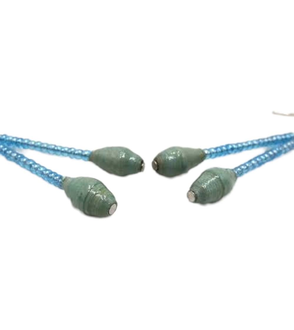 These earrings are a unique one of a kind design from recycled paper with each bead carefully rolled and varnished.