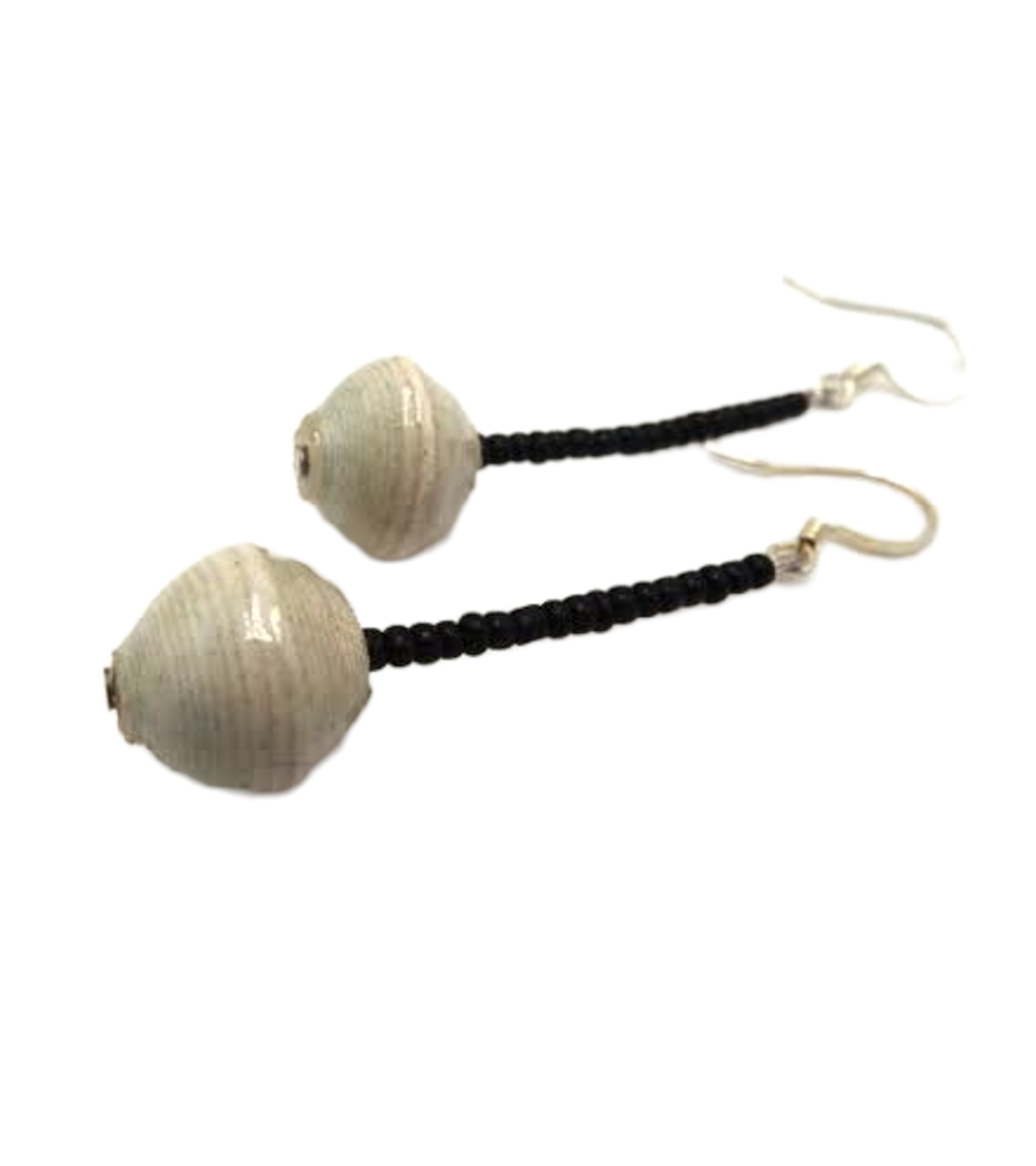 These earrings are a unique one of a kind design from recycled paper with each bead carefully rolled and varnished.