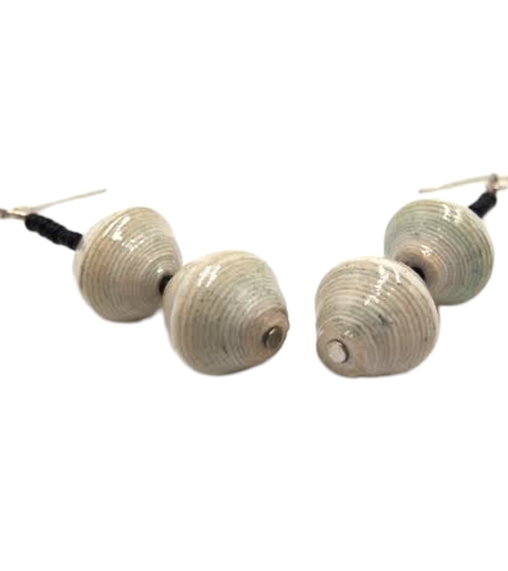 These earrings are a unique one of a kind design from recycled paper with each bead carefully rolled and varnished.