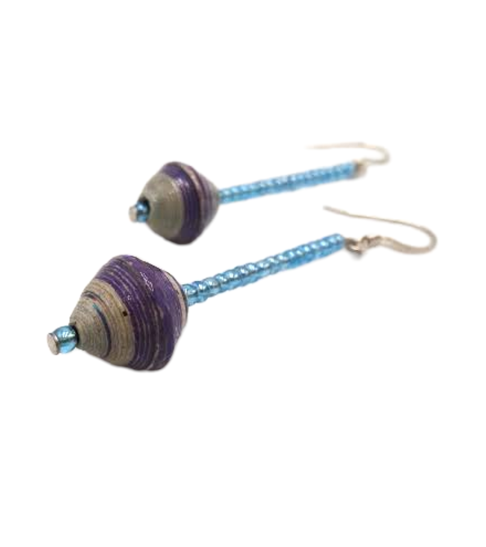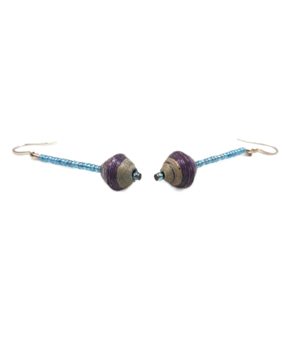 These earrings are a unique one of a kind design from recycled paper with each bead carefully rolled and varnished.