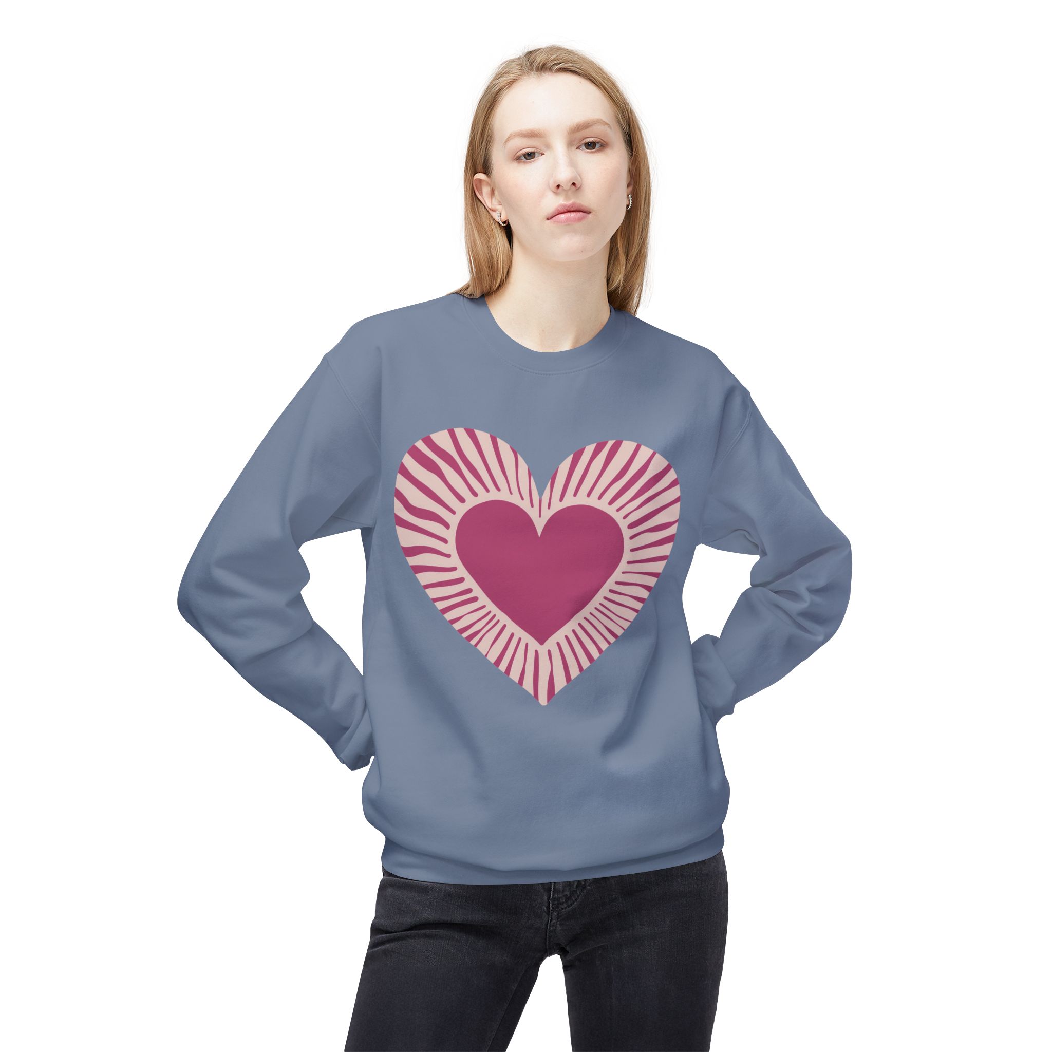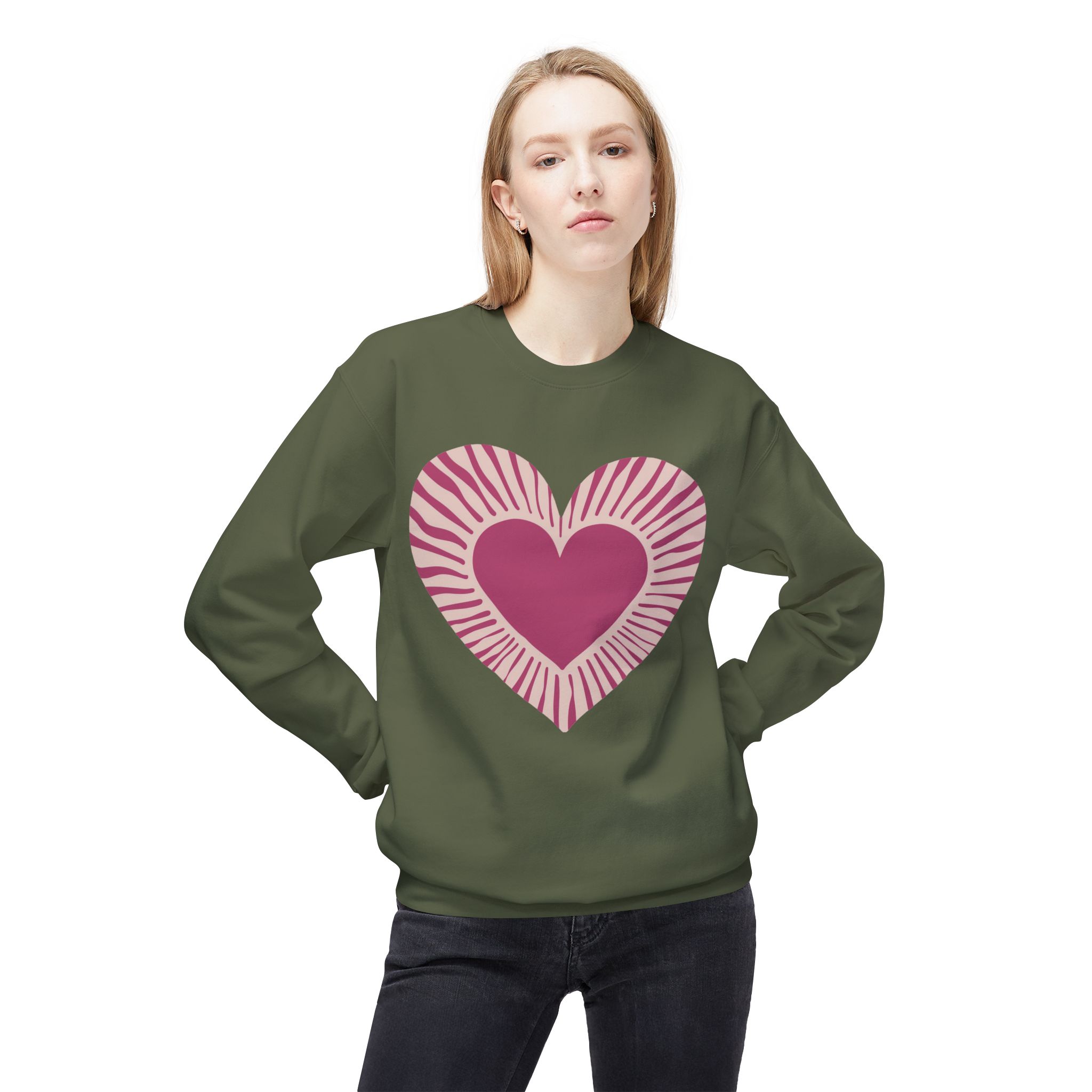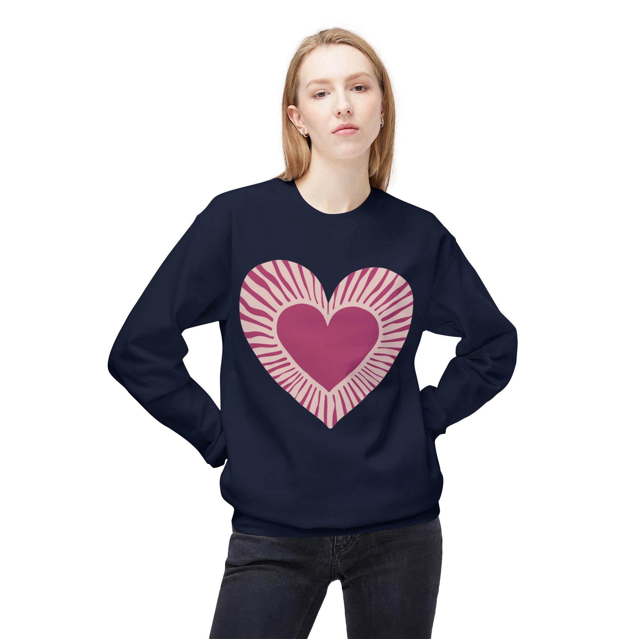 Love Heart Fleece Crewneck Sweatshirt, Cozy Gift, Unisex Love Pullover, Fall Essentials, Heart Design Apparel