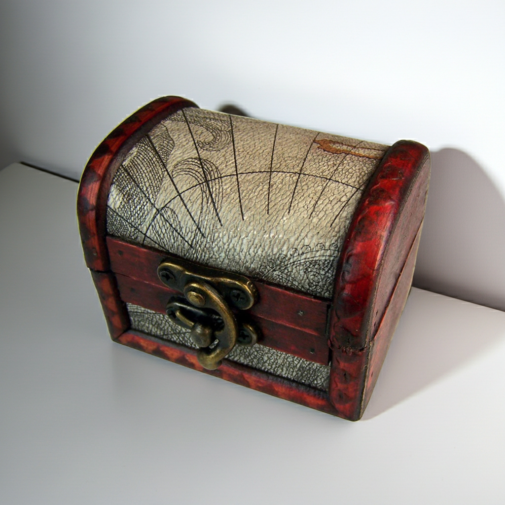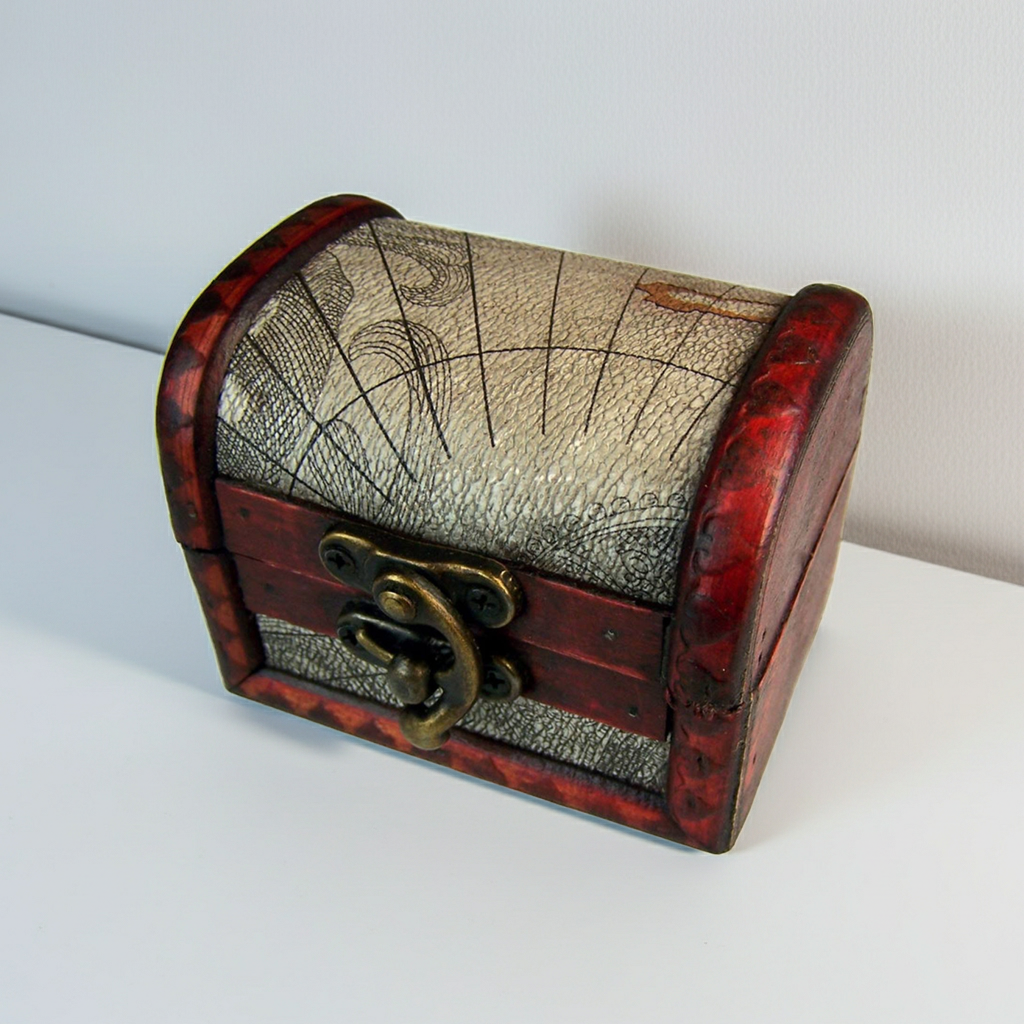 Medium Atlas Design Colonial Keepsake Box – Hand-Finished Vintage Map Chest