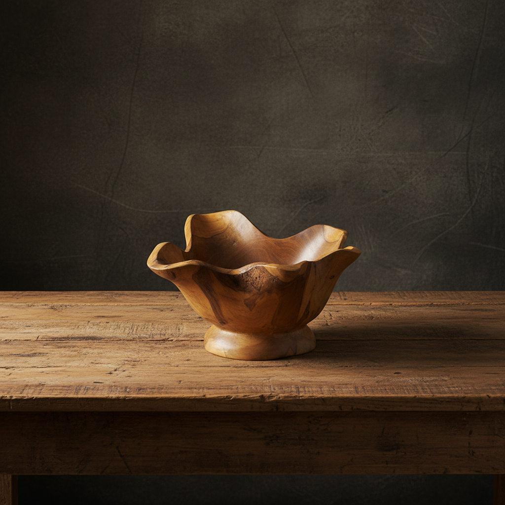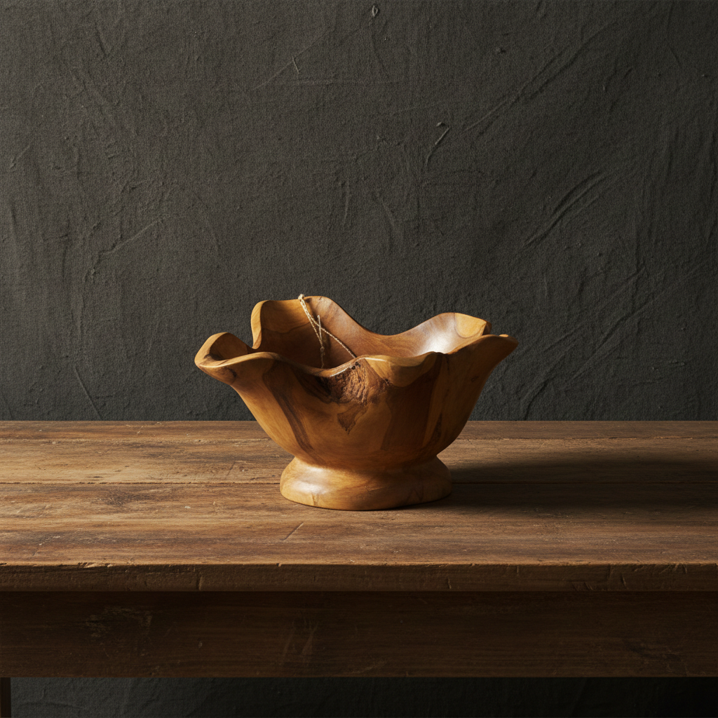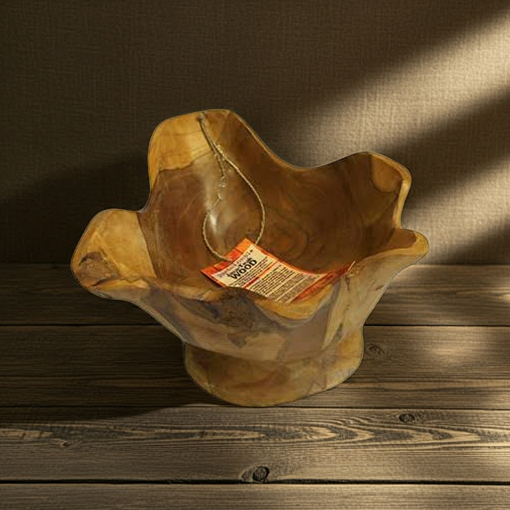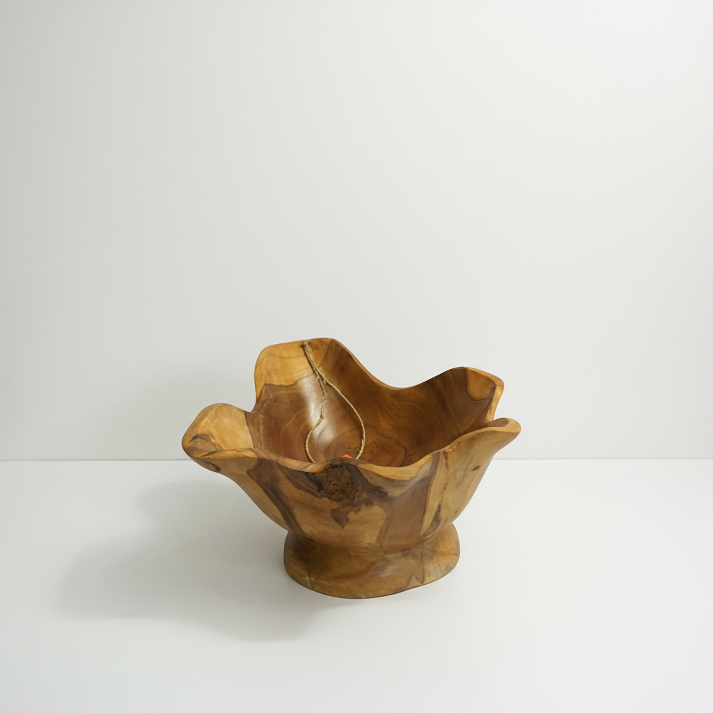 Prized for its high natural oil content and exceptional durability, the teak’s deep-golden grain offers a grounding, biophilic connection to the earth. Whether used to serve artisanal delicacies or as a standalone piece of functional art, its unique geometry elevates the aesthetic vibration of any living space.